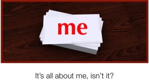 THE KINGDOM OF ME. It’s all about me. Didn’t you know that? It’s not about you … not about us … just about me. Your role? Well, to satisfy my needs, to make me happy.