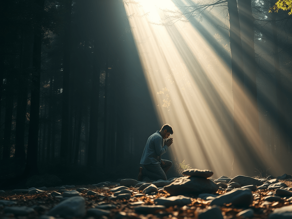 A man (or a woman) humbly comes to the foot of the cross and lays down his (or her) burdens, just as the Lord in Matthew 11 bids us do.